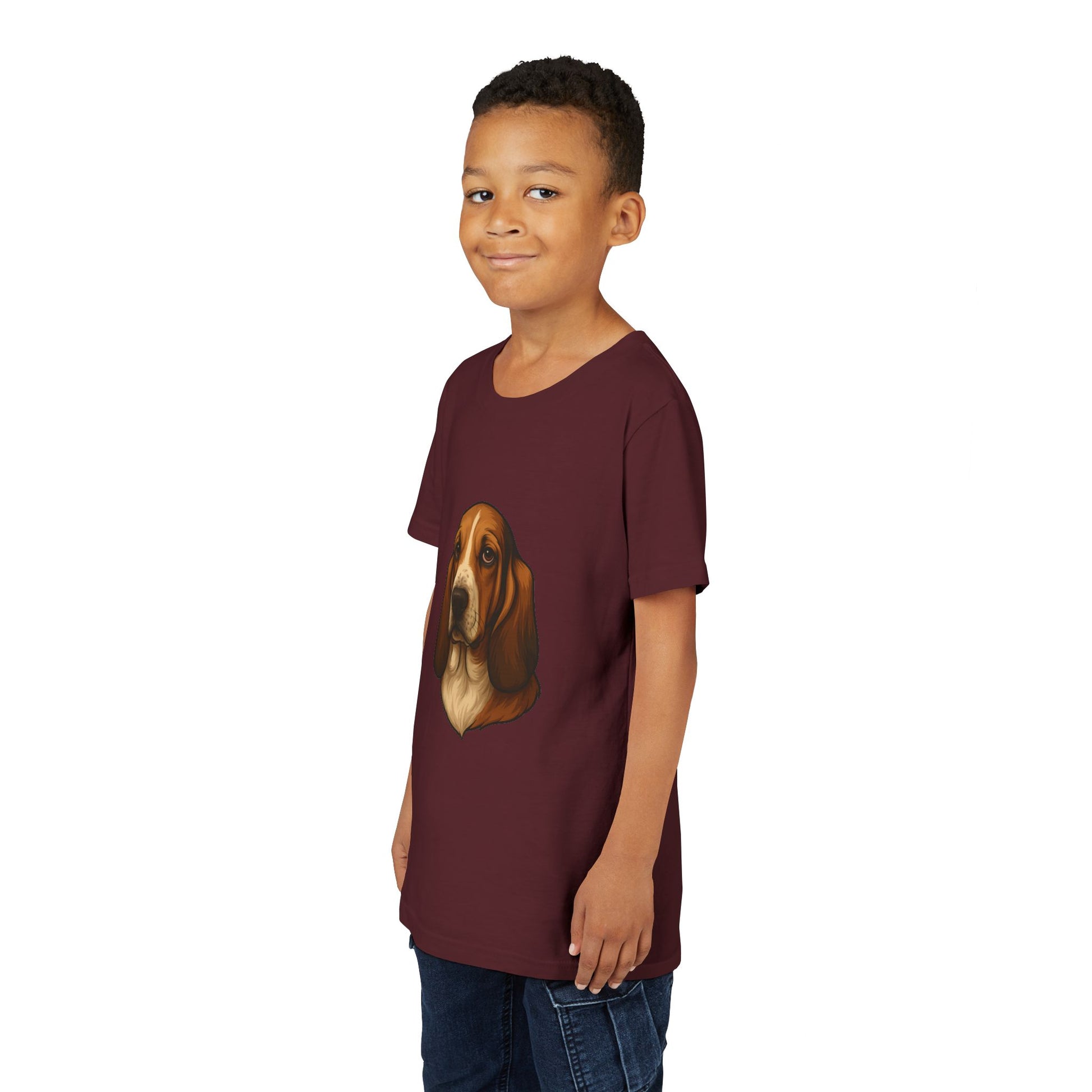 Basset Hound Head Youth Unisex Short Sleeve Crewneck Tee