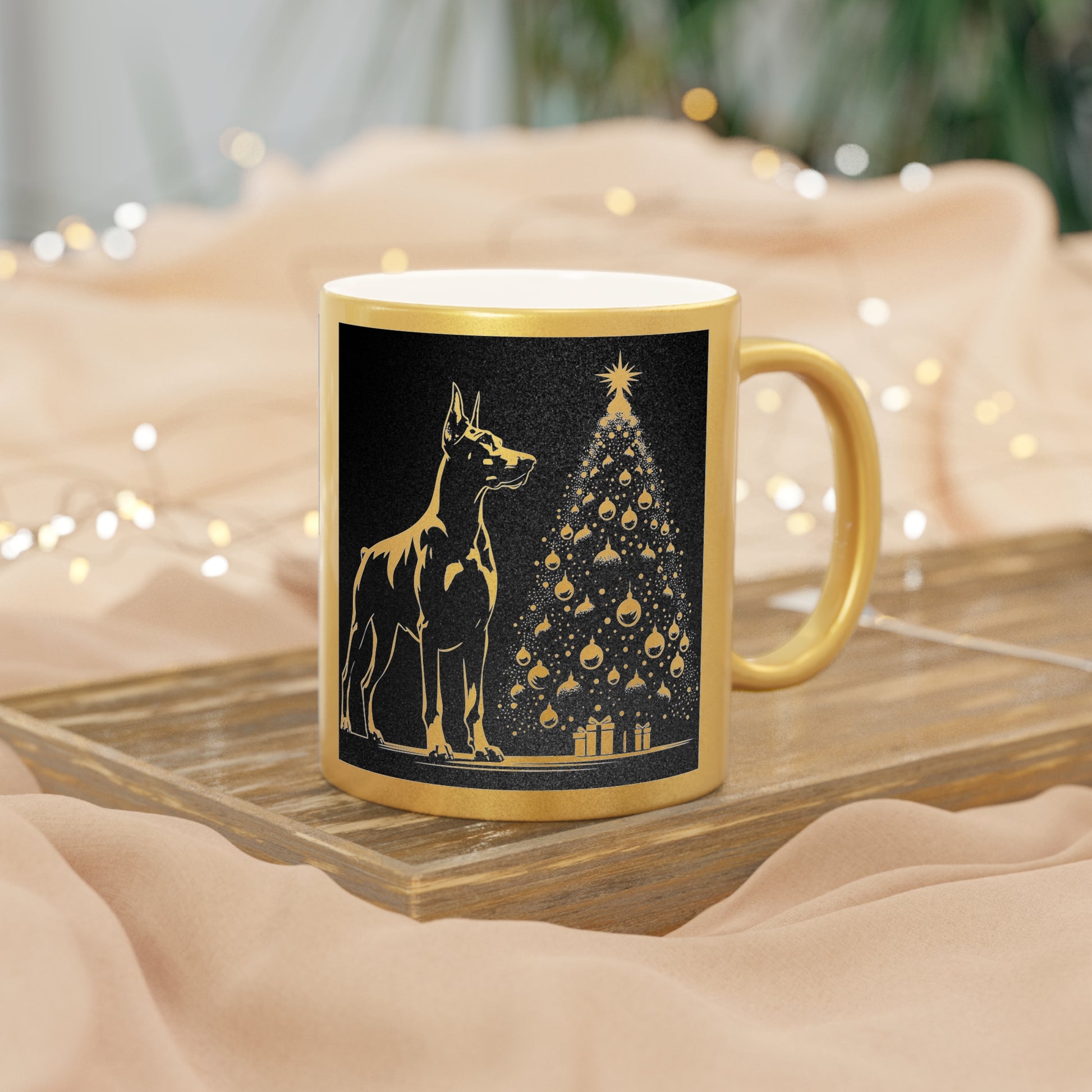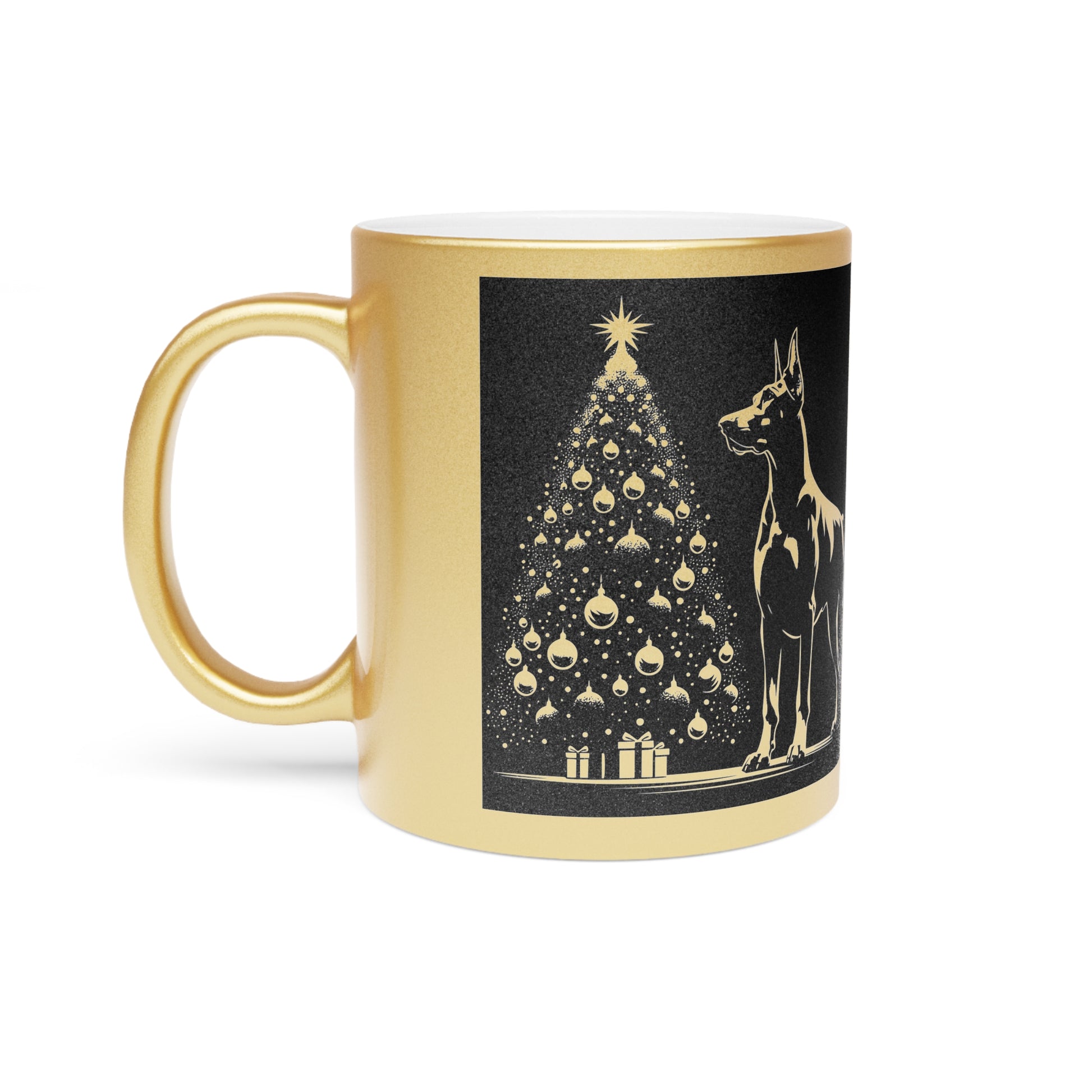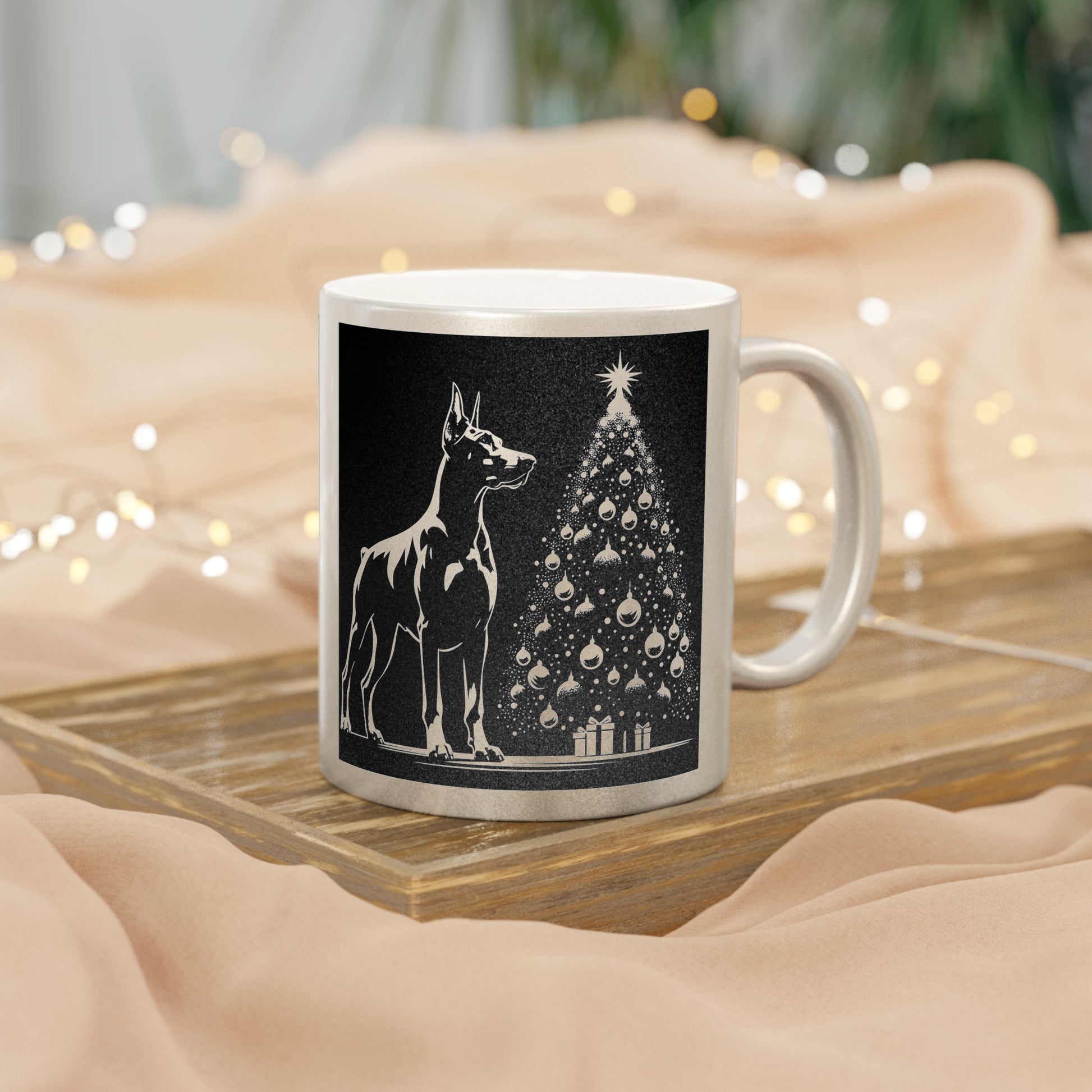 Doberman Christmas Tree Metallic Coffee Mug