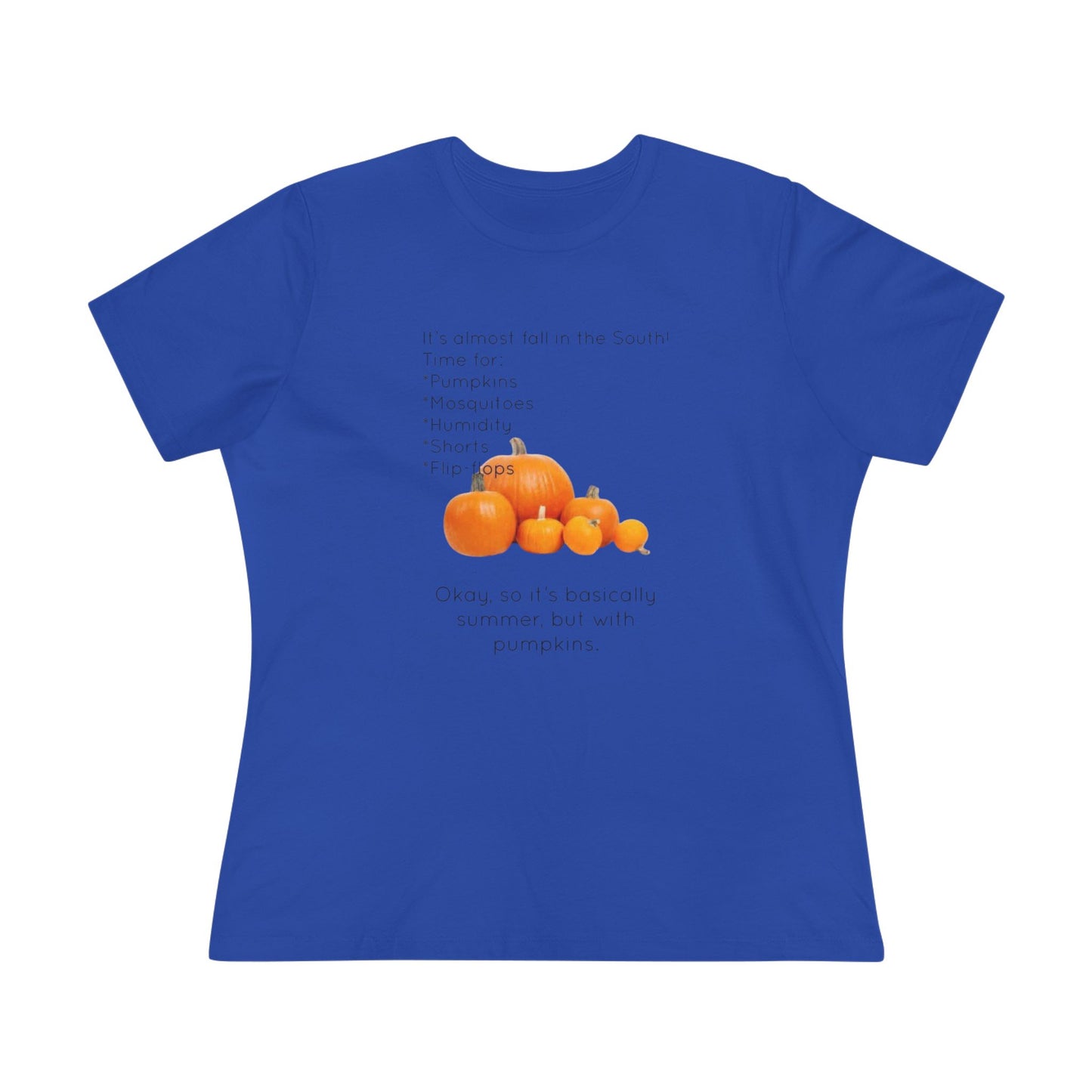 "It's almost time for fall in the South! Time For Pumpkins Mosquitoes Humidity Shorts Flip Flops Okay, so it's basically summer, but with pumpkins" Those of us down here in the south don't get relief from the summertime problems, just because the calendar says the season changed.