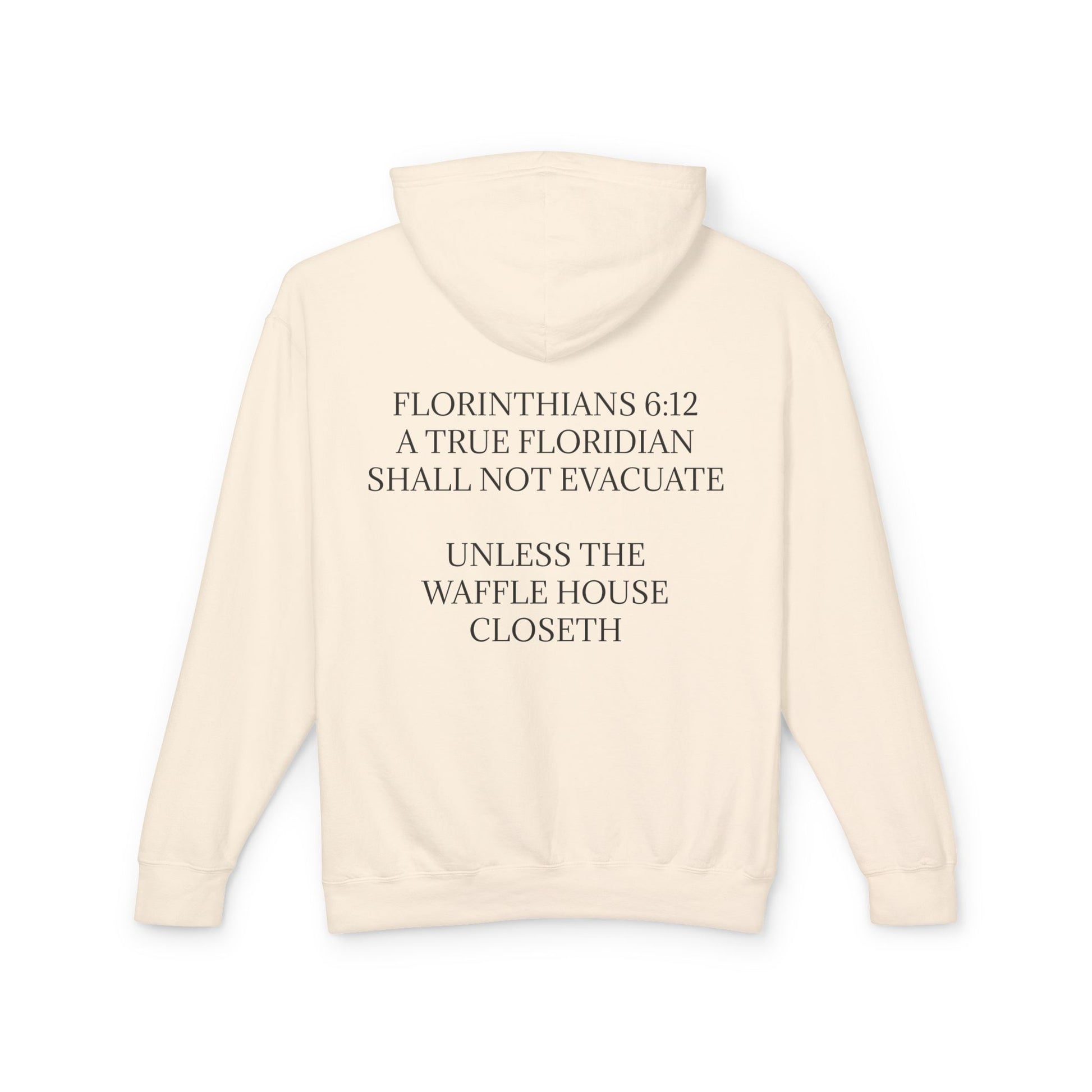 "Florithians 6:12: A True Floridian Shall Not Evacuate Unless The Waffle House Closeth" We all know the real Floridians from the non-Floridians by their storm behavior.