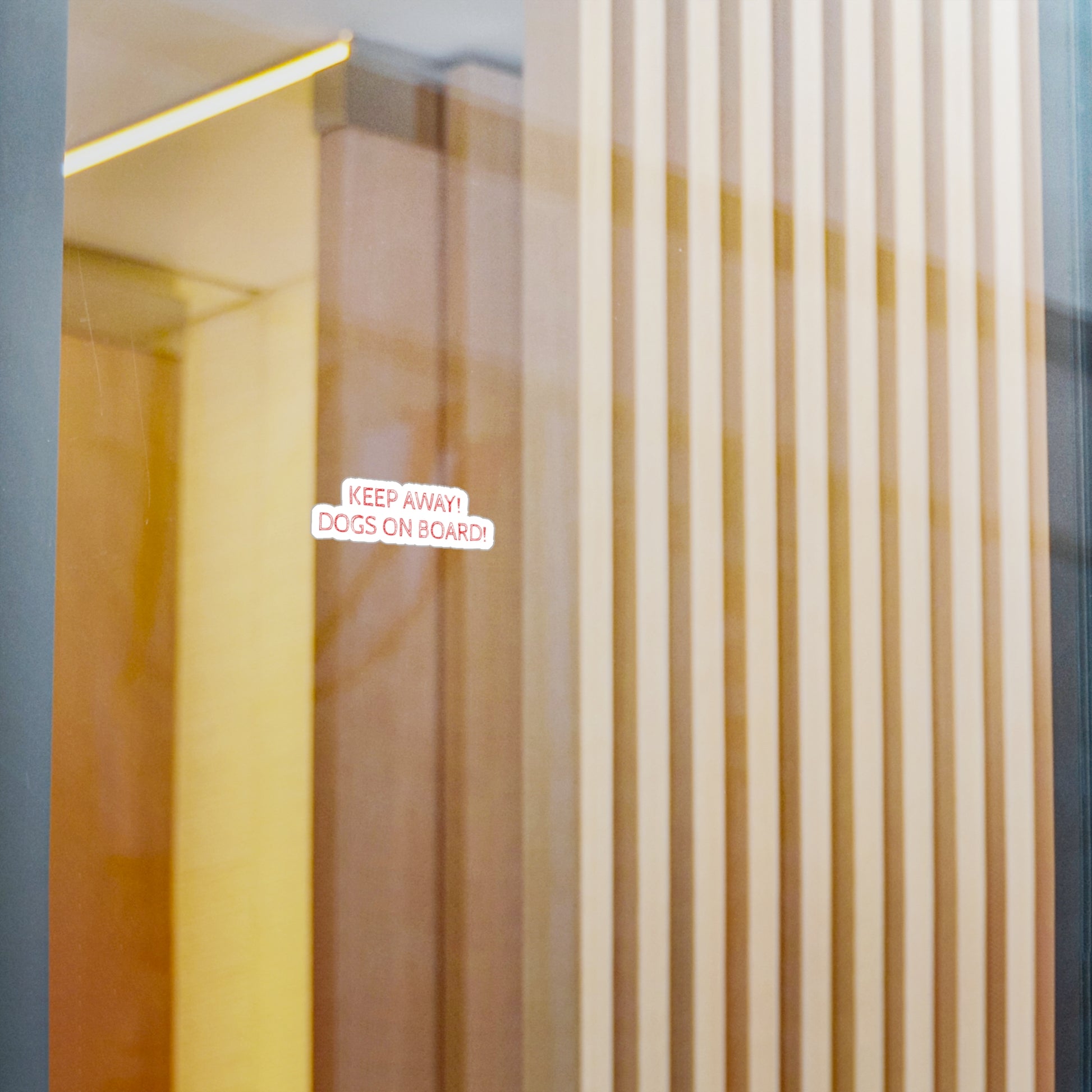 "KEEP AWAY! DOGS ON BOARD!" Warn people that they shoud not attempt to enter your vehicle. More legal than the traditional "Beware Of Dog" warnings that can allow people to sue you.