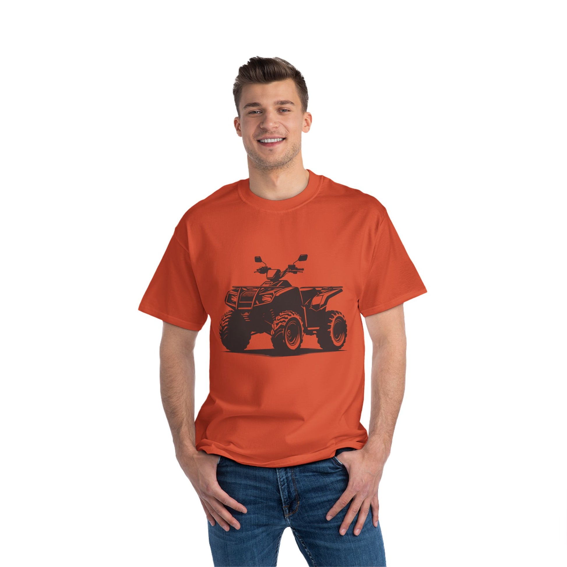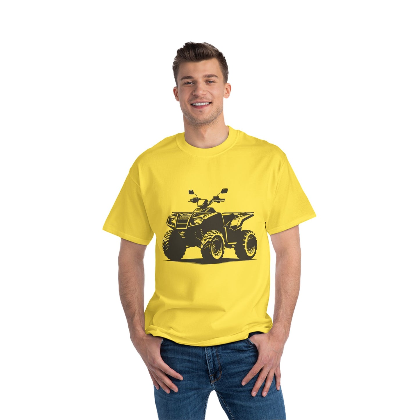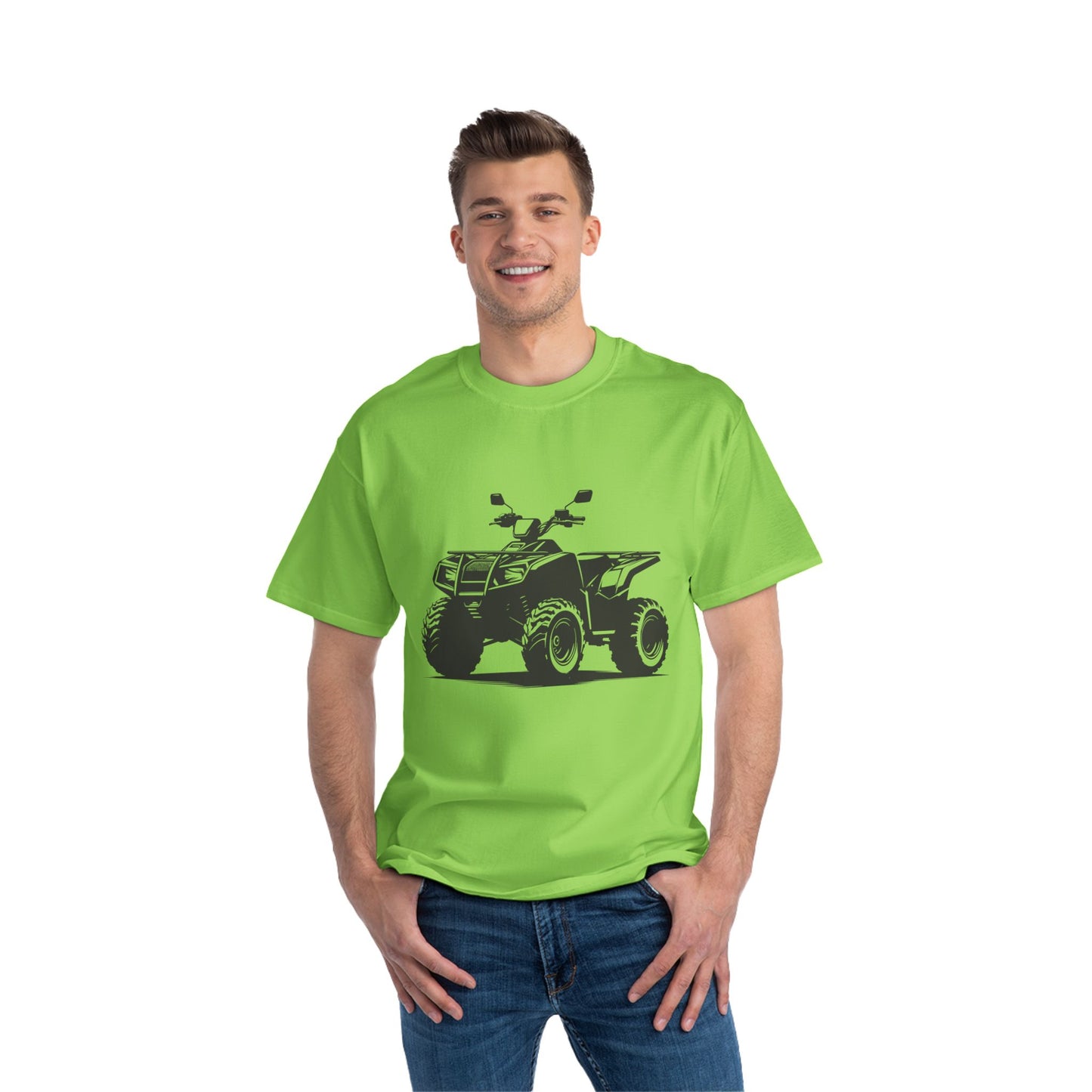 Beefy-T is made from 100% cotton jersey (fiber content may vary for different colors) for supreme softness in any occasion. Relaxed fit for comfort. Shoulder to shoulder taping and double needle stitching on the collar, sleeves, and bottom, for durability. Black sewn-in label.