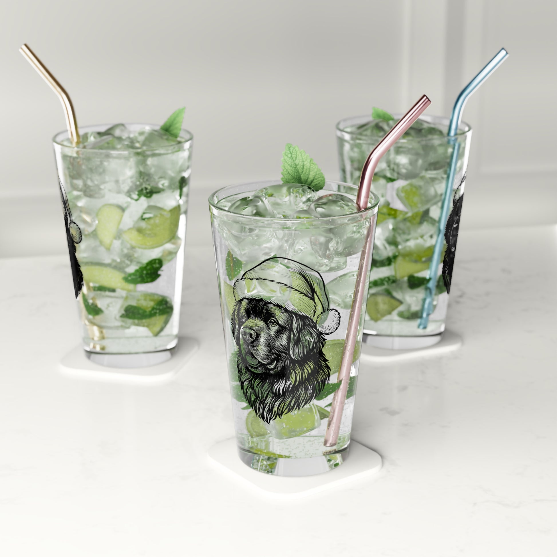 Santa Paws Newfie Drinking Glass