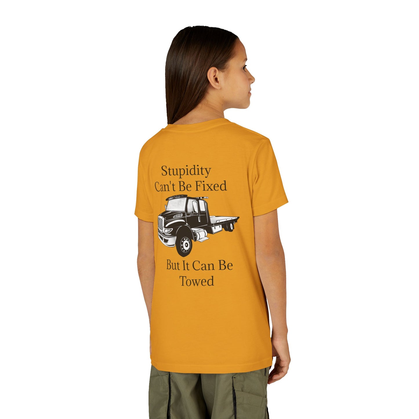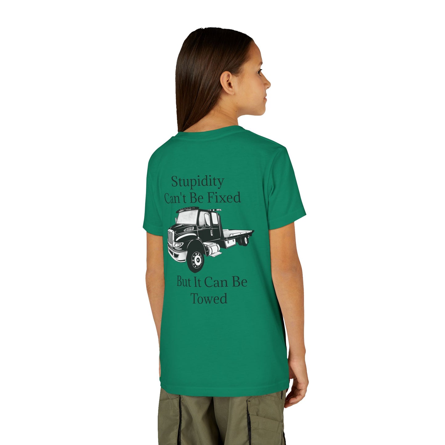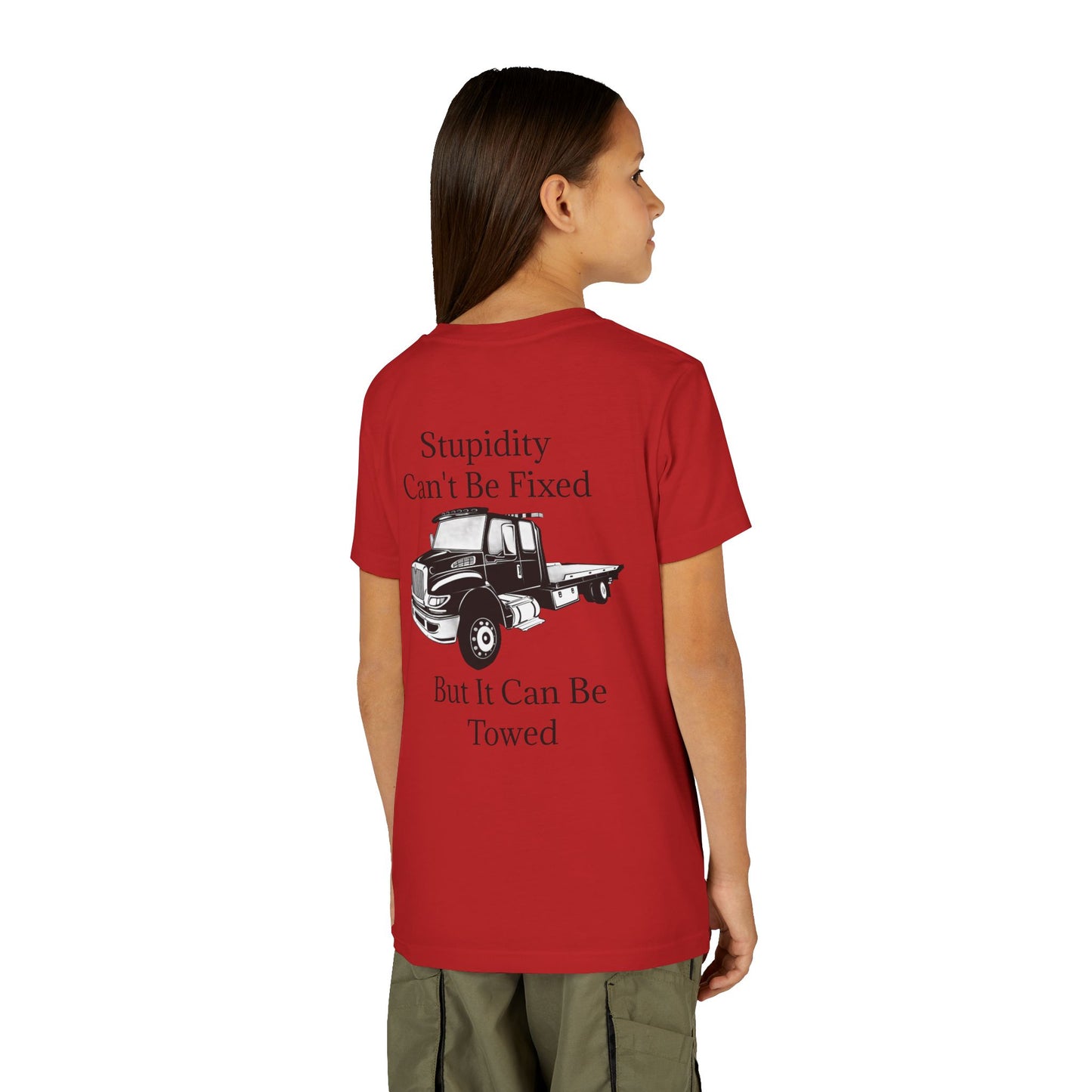 Stupidity Flatbed Tow Truck Youth Unisex Short Sleeve Crewneck Tee